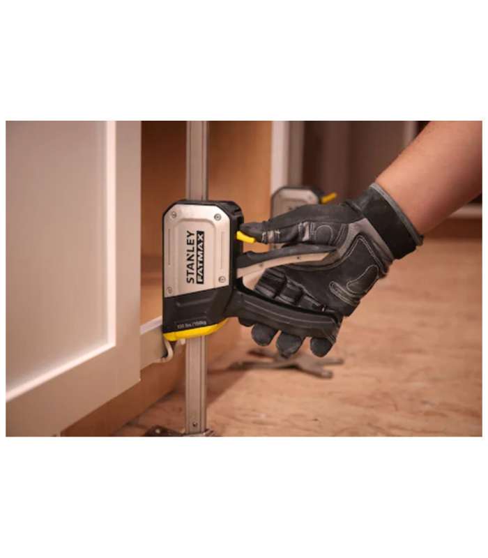 TradeLift™ STANLEY® FATMAX® permet de lever jusqu'à 150 kg sur une hauteur de travail de 7 à 220 mm. Conçu pour allier sécurité et efficacité, son levier de poussée, dirigé vers le bas, a un effet démultiplié. Actionné à la main ou au pied, vous lèverez facilement la charge jusqu'à 6 mm par poussée. Ajustez aussi à la descente avec 2 boutons : un pour abaissement fin avec des pas jusqu'à 2,5 mm et un de relâche totale, encastré, pour éviter toute manipulation accidentelle. La base élargie du TradeLift™, avec 4 emplacement pour vis, lui assure une grande stabilité tandis que son plateau en biseau se glisse facilement sous l'objet à lever. Son boîtier fermé protège sa mécanique contre les poussières et débris. Autre soin apporté à sa conception, sa poignée surmoulée procure à la fois confort, adhérence et contrôle.