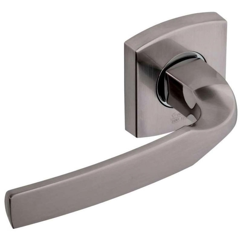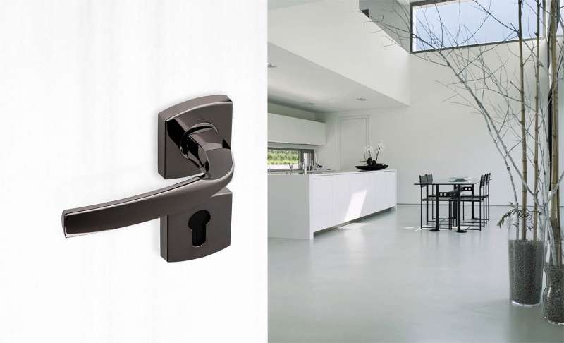 Ensemble monobloc : béquilles et rosaces solidarisées.Rosaces avec ressort de rappel intégré. Sous rosaces en polyamide chargé de fibre de verre à piliers pour fixation traversante EA 38 mm.Fourni avec vis de fixation M4.Pour porte épaisseur standard de 40 mm.