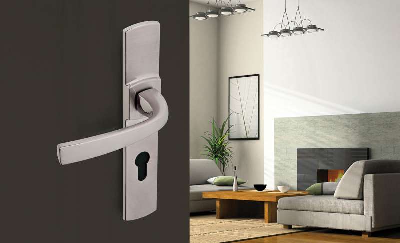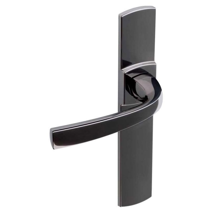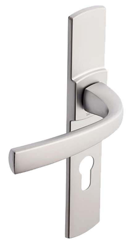 Ensemble monobloc : double béquille et plaques 220 x 41 mm solidarisées.Plaques fondues avec piliers taraudés intégrés et vis invisibles côté extérieur.Pour porte épaisseur 40 mm et serrure entraxe 70 mm. Fourni avec vis de fixation M4.
