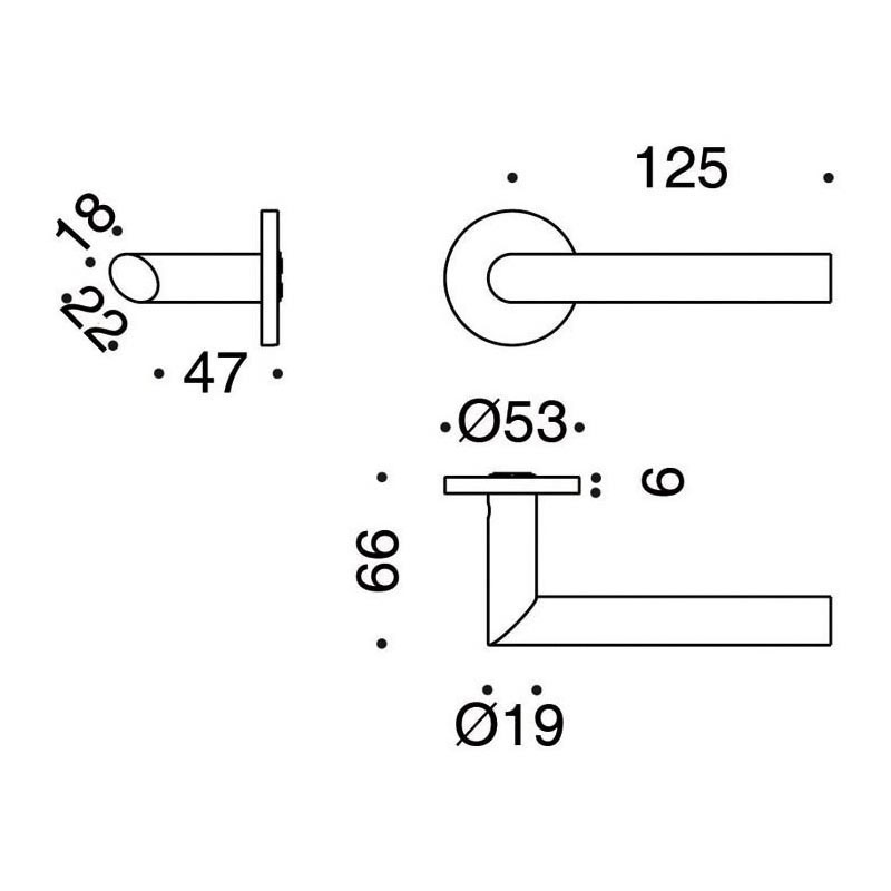 Béquille de section ovale 16x22 inclinée à 45°.Béquille et rosace solidarisées.Conseillé pour utilisation avec serrure axe à 50.
