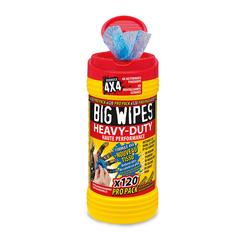 Lingettes BIG WIPES Heavy-duty texturées pour dégraisser et nettoyer.