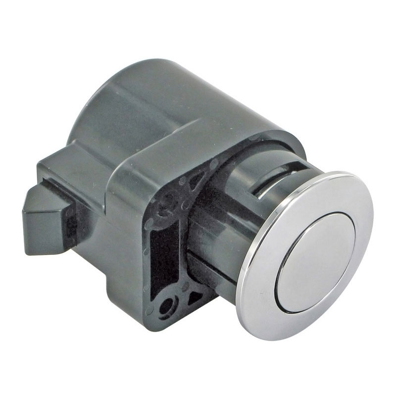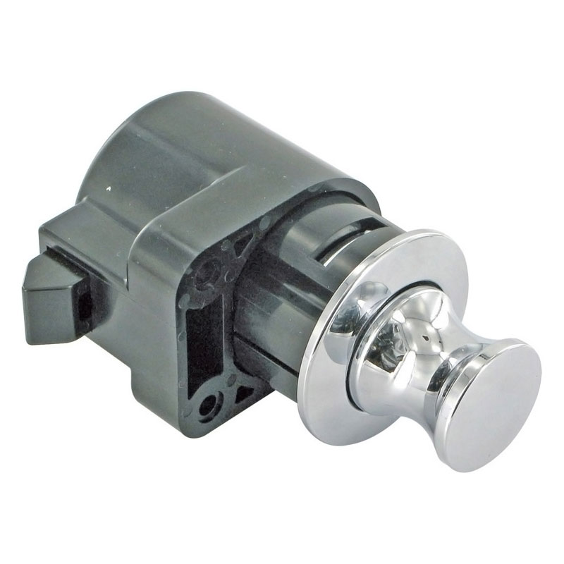 Loqueteau PVC noir avec bouton et rosace Ø32 zamac chromé.