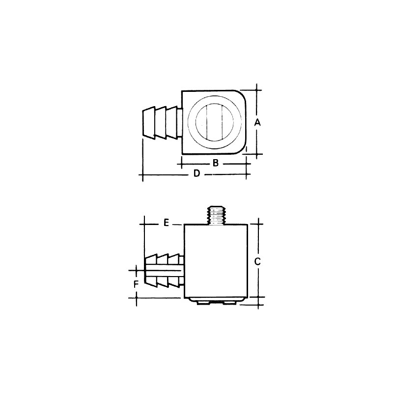 A = 16 mmB = 16 mmC = 19 mmD = 26 mmE = 10 mmF = 7 mm