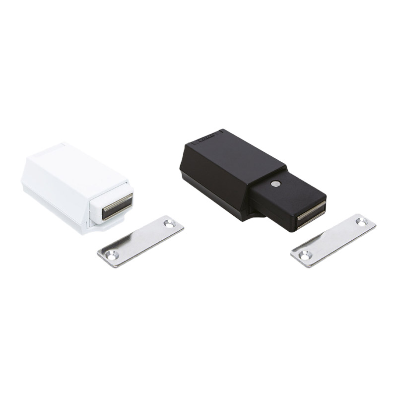Loqueteau pour grande porte. Corps en métal pour une grande durabilité.Conçu pour une utilisation sur de grandes portes à cause de fortes pressions exercées.La pièce en plastique est ignifuge et conforme à la norme UL94V-0.La partie magnétique a une tolérance de 1,5° de chaque côté pour un bon maintien de la gâche. (cela permet un meilleur ajustement même s’il y a un léger décalage).Pour les portes superposées, bien s'assurez qu’il y a un dégagement correct entre la porte et le panneau latéral.