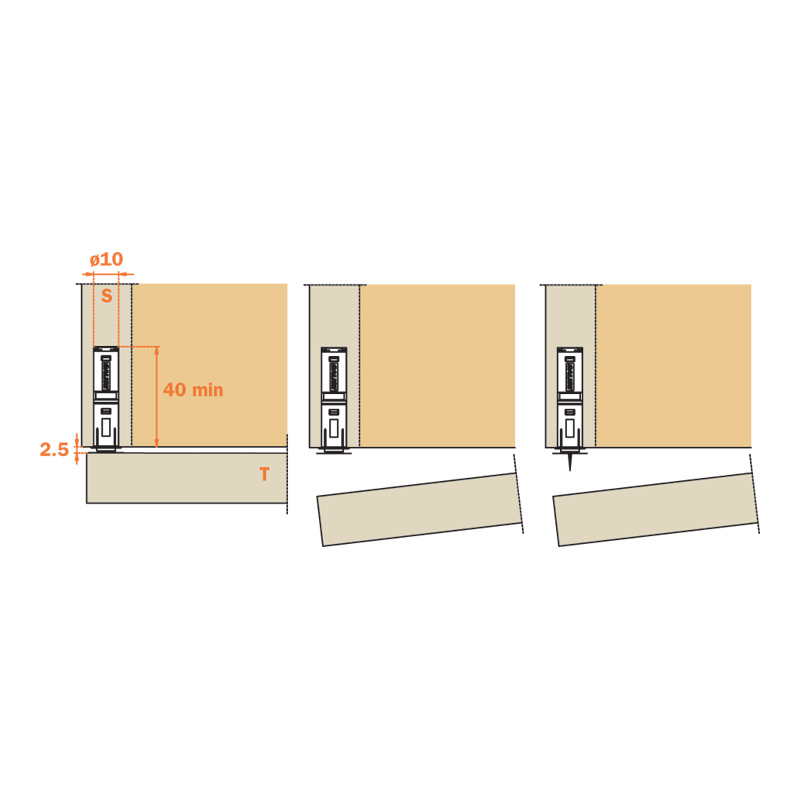 Pour une fermeture et ouverture efficace, il est impératif d'associer les charnières Push avec le loqueteau Salice Push.Montage possible en applique avec embase cruciforme (en option).