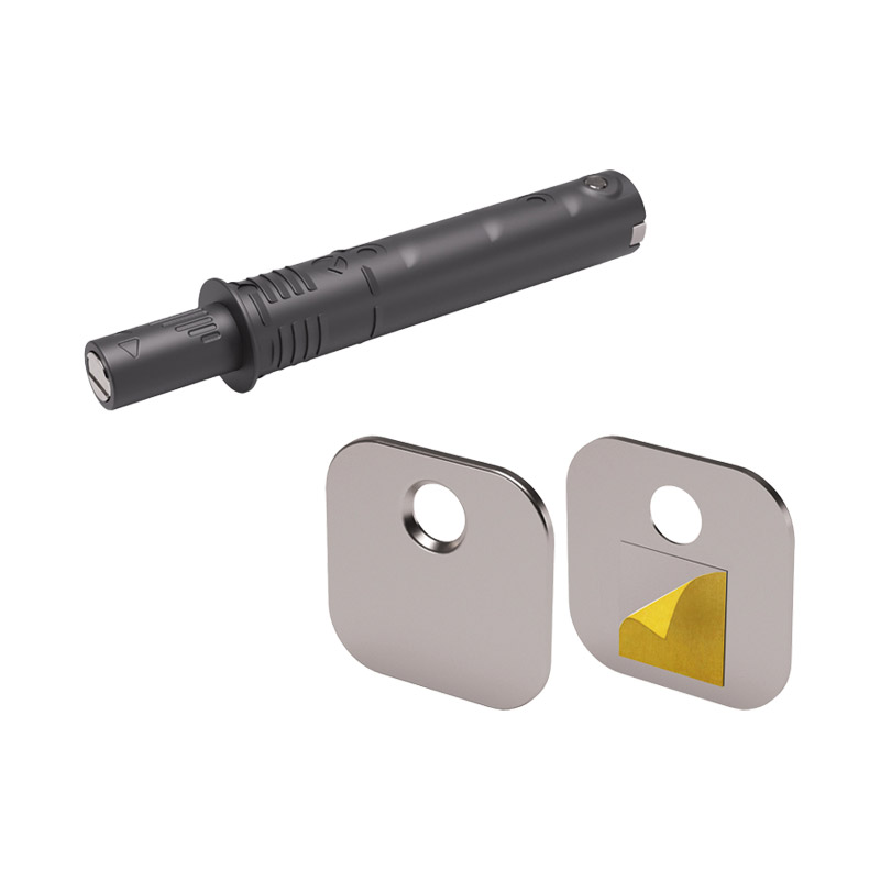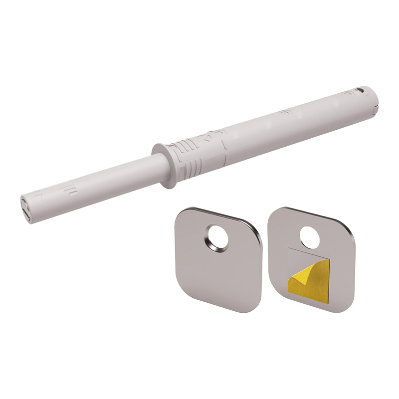 Utilisable avec façade équipée de tous types de charnières avec ressort (sauf charnières à ressort inversé).Une pression sur la façade déclenche l’ouverture de la porte.Jeu entre façade et caisson, pour un bon fonctionnement: mini 2 mm.