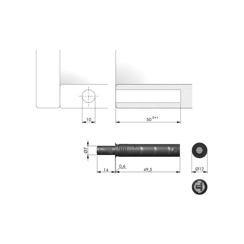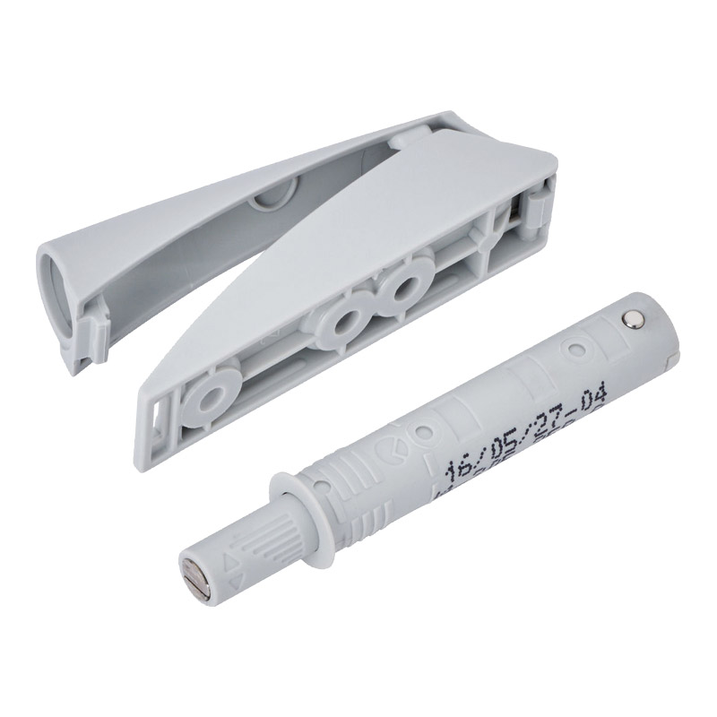 Utilisable avec façade équipée de tous types de charnières sans ressort (sauf charnières à ressort inversé).Une pression sur la façade déclenche l’ouverture de la porte.Jeu entre façade et caisson, pour un bon fonctionnement: mini 1,4 mm. Recommandé pour porte en applique, semi encastrée ou rentrante.Réglage du piston 6 mm.Corps et embase plastique.Livré avec gâche.Embase droite à fixation invisible.Longueur 60 mm, largeur 14 mm, épaisseur 16 mm.
