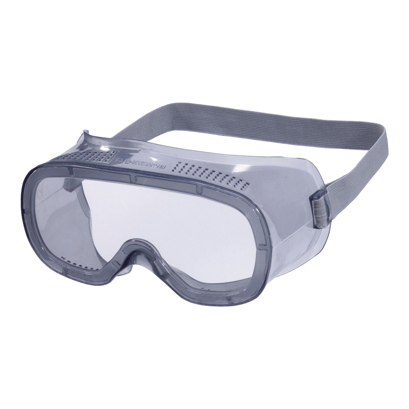 Lunette masque polycarbonate incolore monture souple en PVC ventilation directe bandeau élastique tissé poids : 60 gr.
