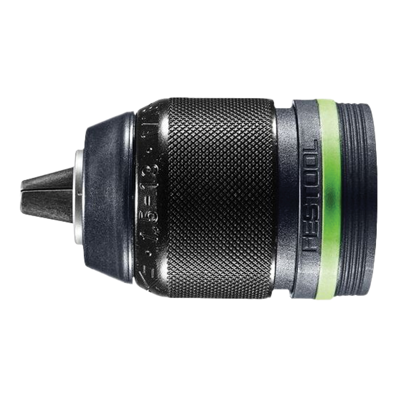 Pour toutes les perceuses-visseuses sans fil, perceuses-visseuses à percussion sans fil, perceuses (sauf DR 20 et DRP 20) et perceuses à percussion Festool avec interface CENTROTEC ; version résistant à la frappe pour l'utilisation avec des forets pour pierre|avec dispositif de blocage de sécurité pour empêcher un desserrage accidentel de l'outil|surface de préhension en métal