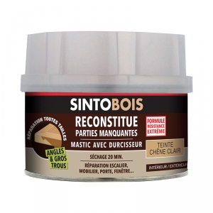 Le Mastic polyester bi-composants est idéal pour reconstituer les parties manquantes.La mastic polyester est faite pour réparer les charges lourdes tels que volets, pieds de meuble, charnière de porte, gond,...Répare le mobilier, le parquet, portes, madriers, abris de jardin, volets, poutres, poteaux... Résiste aux passages fréquents (type escaliers, angles et gros trous du mobilier et portes...) et permet d'assembler par collage des pièces de bois. Se perce , se visse et se taraude facilement.Idéal pour toutes finitions (vernis, peinture, lasure) et en extérieur.Une solution très solide et très rapide. Possibilité de mélanger les teintes entre elles pour obtenir la nuance souhaitée. Se travaille en 5 min à 20° et 10min à 10°. Sec en 20 min.