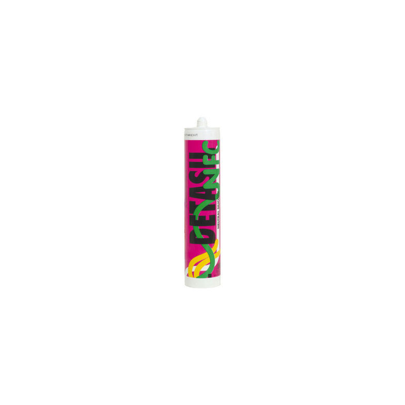 Mastic silicone à base d' oxime.Adhére sans primaire sur aluminium, PVC, béton armé, laiton, bronze, acier, bois.Peut nuire à l'étanchéité du joint butyle et à la feuille de PVB du verre de sécuritéTempérature d'application +5° à + 40°Reprise d'élasticté > 90%Formation pellicule (23°) Translucide 10 min, couleur 25 minLabel SNJF Façade