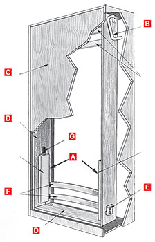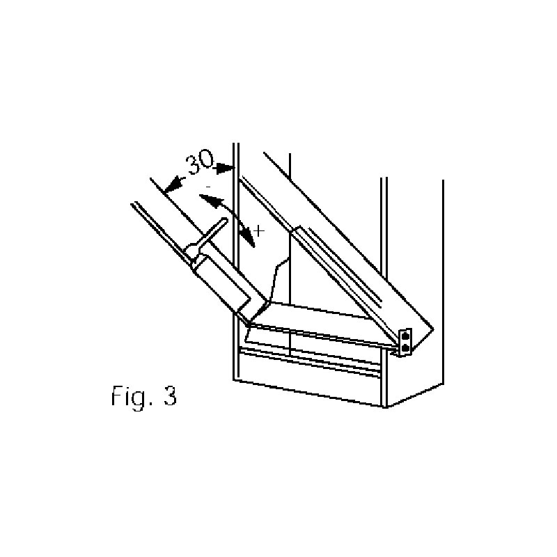 3-Tout en maintenant le sommier dans une inclinaison de 30° par rapport au meuble, introduire les prismes des équilibreurs dans les logements prévus sur les plaques et de manière à ce que les pointes des vis de cadrage s'appuient sur la partie inférieure de ces logements.