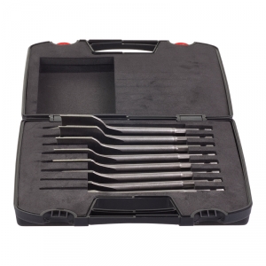 En acier, avec une pointe de centrage et 2 couteaux traçoirs