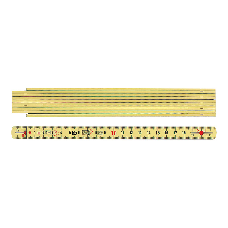 Polyamide renforcé de fibres de verre résiste aux fissures, aux rayures, à la flexion, à l'eau et aux acides.Articulation brevetée, sans jeu, inusable et insensible à l'encrassement avec ressort pour une tension élevée régulière. Cran d'arrêt utile à 90° de toutes les articulations.Graduation gravée, noire en millimètres, chiffres des dizaines en rouge.Classe de précision III selon la norme UE.Extrémités métalliques inusables sur la première et la dernière branche. Lecture des deux côtés grâce à une graduation à rebours (Recto Verso).