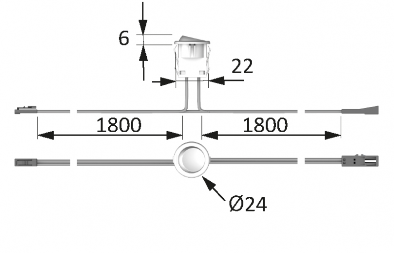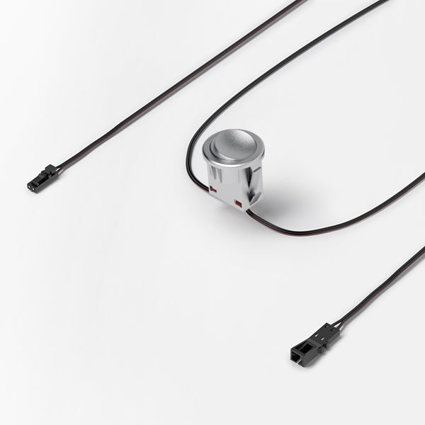 Platine carré 25x25 mm, hauteur 27 mm. Encastrement Ø22 mm.Utilisation maxi 36 W. Livré câblé avec 2 cordons longueur 1800 mm équipés de mini-prises 12 V M1. Décor aluminium