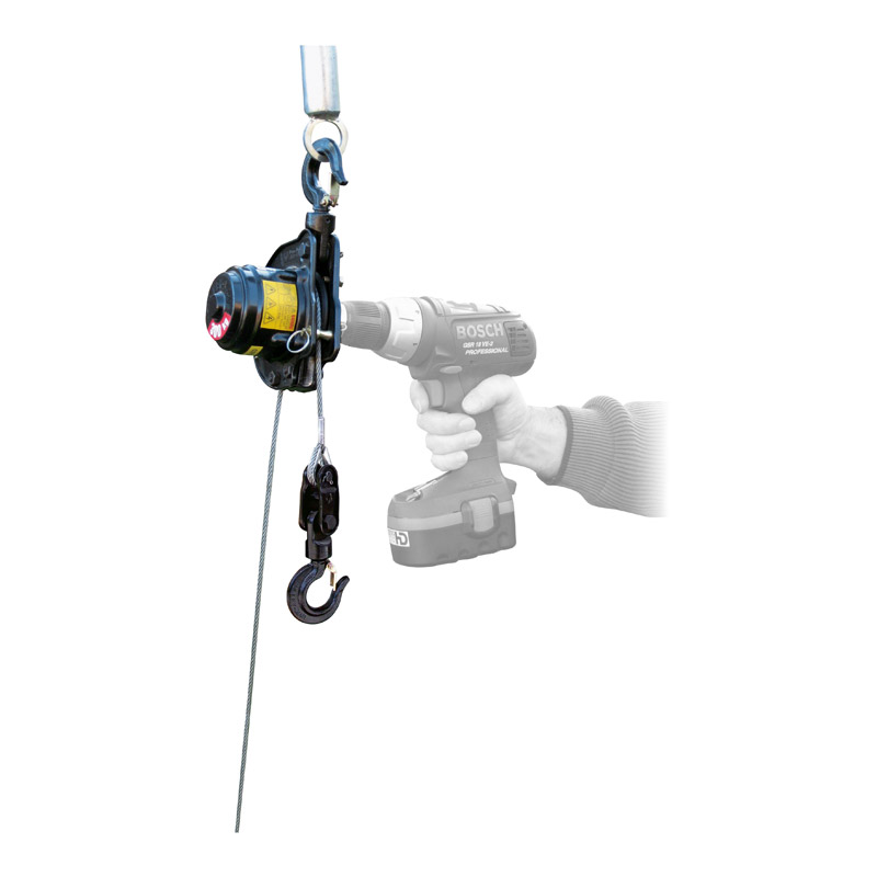 longueur de câble limitée à 50 m en levage (au-delà de 12 m, perte de 10 % de force de levage par tranche de 10 m)