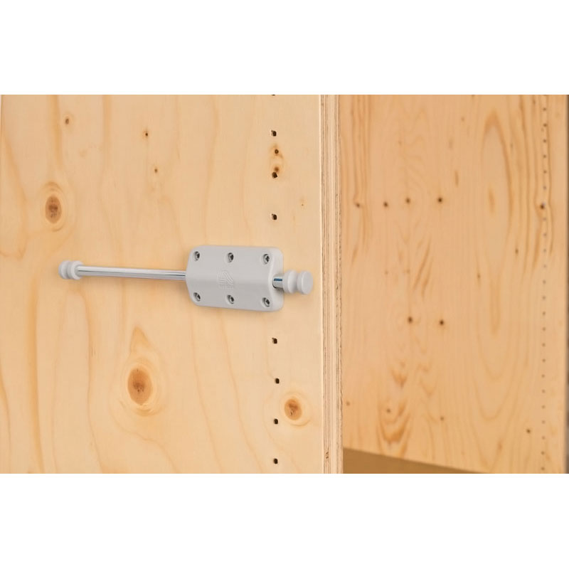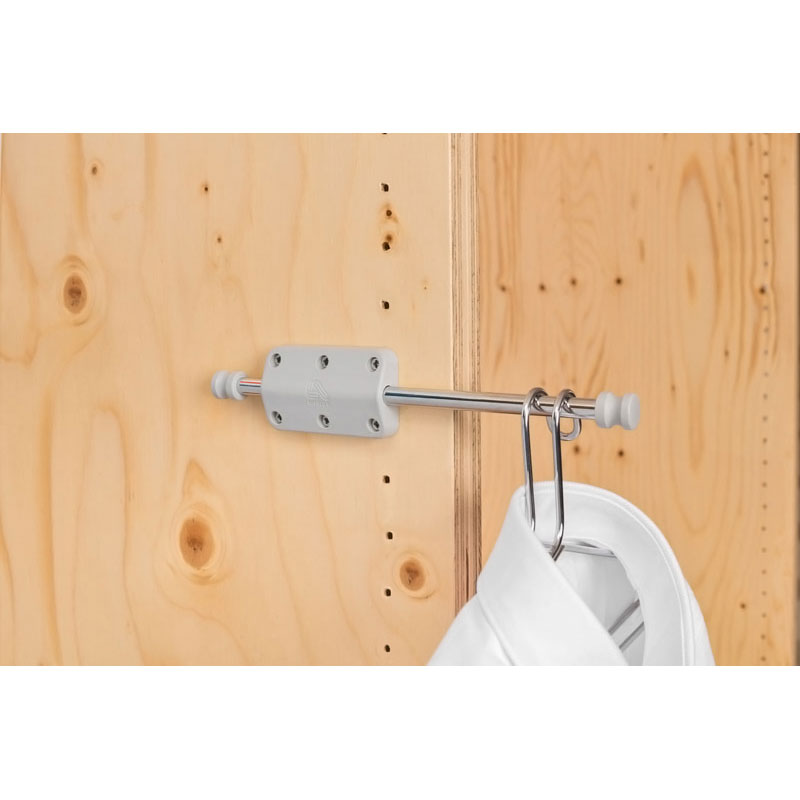 Accessoire très pratique à fixer aussi bien sur le flanc d'une armoire que sous une étagère. Il permet d'accrocher les cintres sur le tube acier chromé rétractable. Platine en nylon renforcé de fibre de verre, décor gris alu.Livré avec fixations.