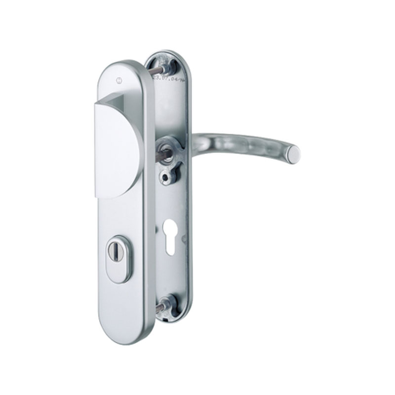 Garniture de sécurité aileron de tirage/poignée HOPPE en aluminium sur plaques longues avec protecteur de cylindre, pour porte d'entrée
