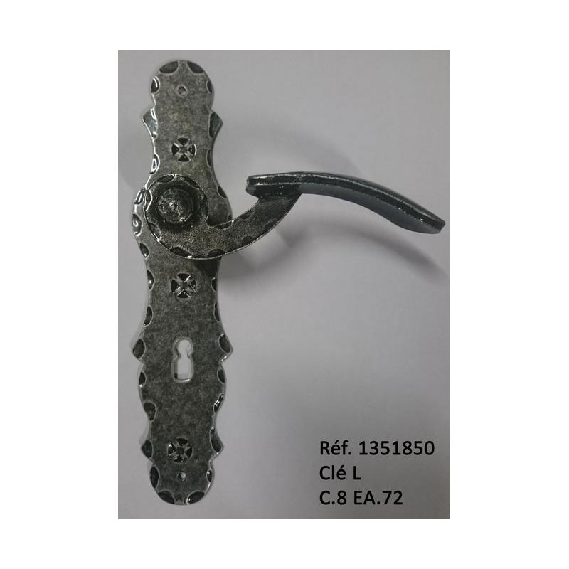Modèle en fer martelé noir sans ressort de rappel Existe en 8/72 et en 8/56 pour les serrures apparentes (donc avec 1 plaque + béquilles doubles)