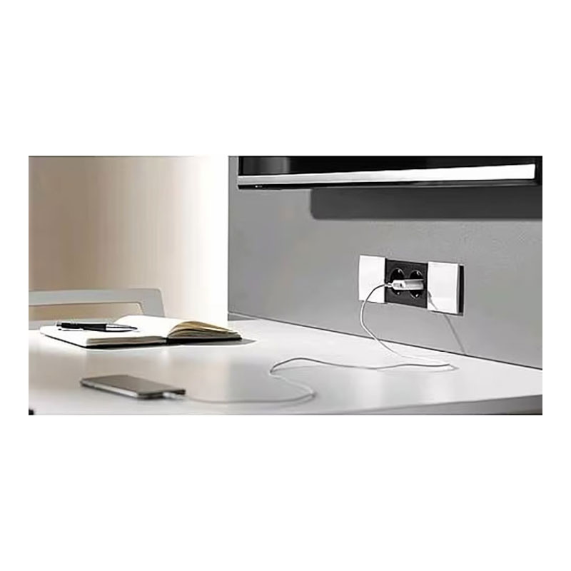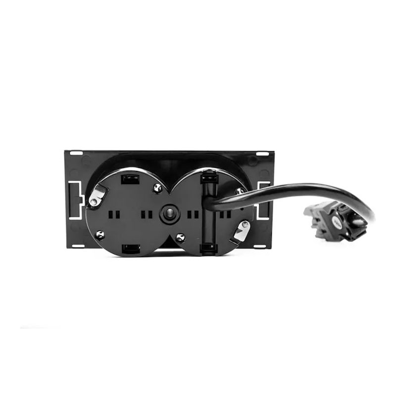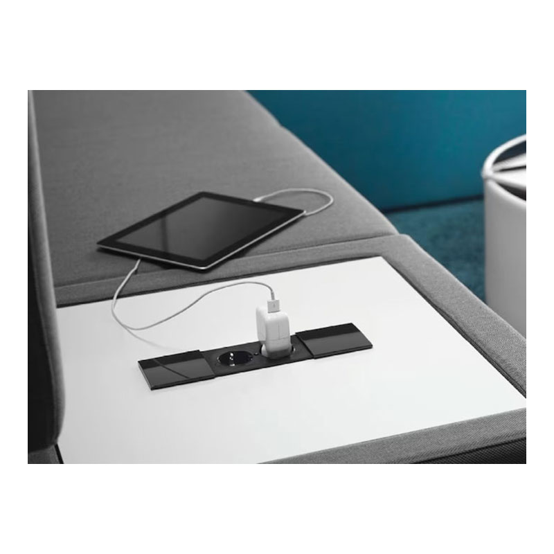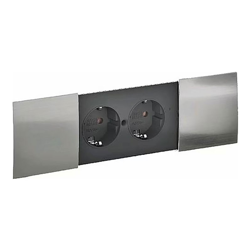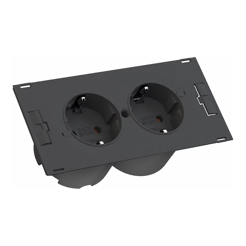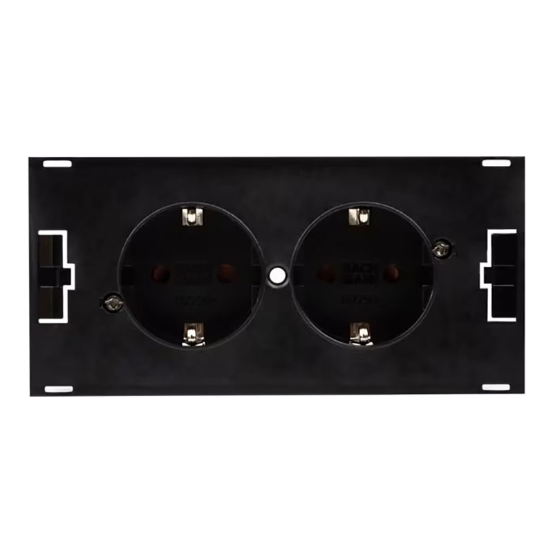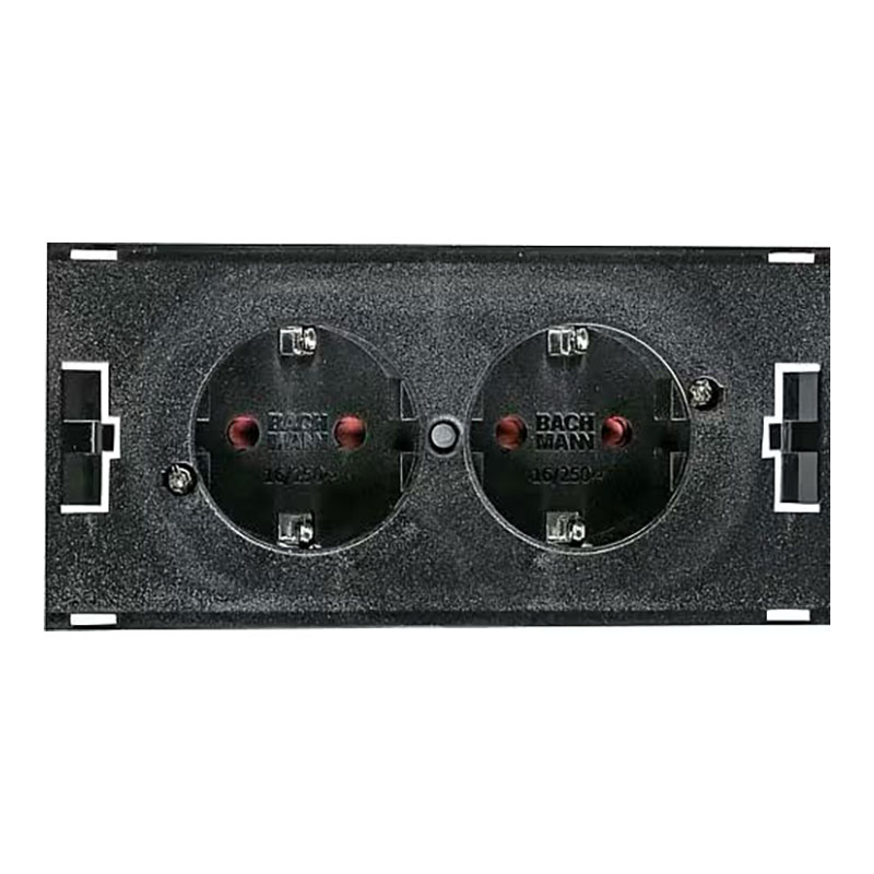 Bloc multiprises pour la cuisine ou le bureau. Décor noir. Sa faible profondeur de montage permet une intégration peu encombrante dans le plan de travail et le montage en tiroirs. Il peut s'adapter à un montage mural. Câble secteur longueur 2000mm. Livré sans cache.