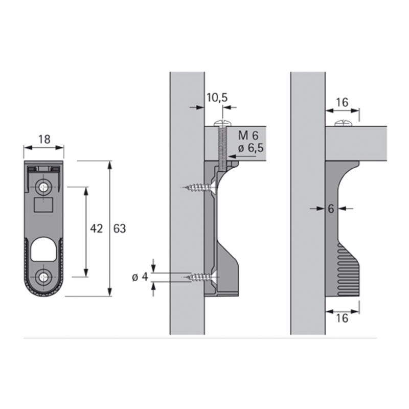 Naisssance pour tube ovale 30x15 mm, à visser sous la tablette avec vis spéciale M6 x 25 ou fixation latérale EA-42 mm.
