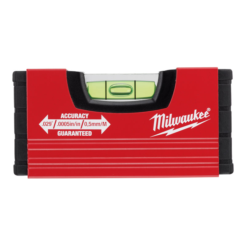 Corps en aluminium. Niveau de poche léger et compact, rentre facilement dans votre ceinture à outils ou votre poche. Fiole solide en acrylique. Antichocs et résistant aux UV. Protections antichocs aux extrémités. Précison garantie à vie. Précision 0.5 mm/M Certificat de tiers VPA sur l'exactitude.