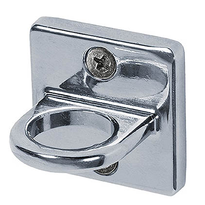 Anneau sur platine murale, pour accroche d'un mousqueton avec cordon.
