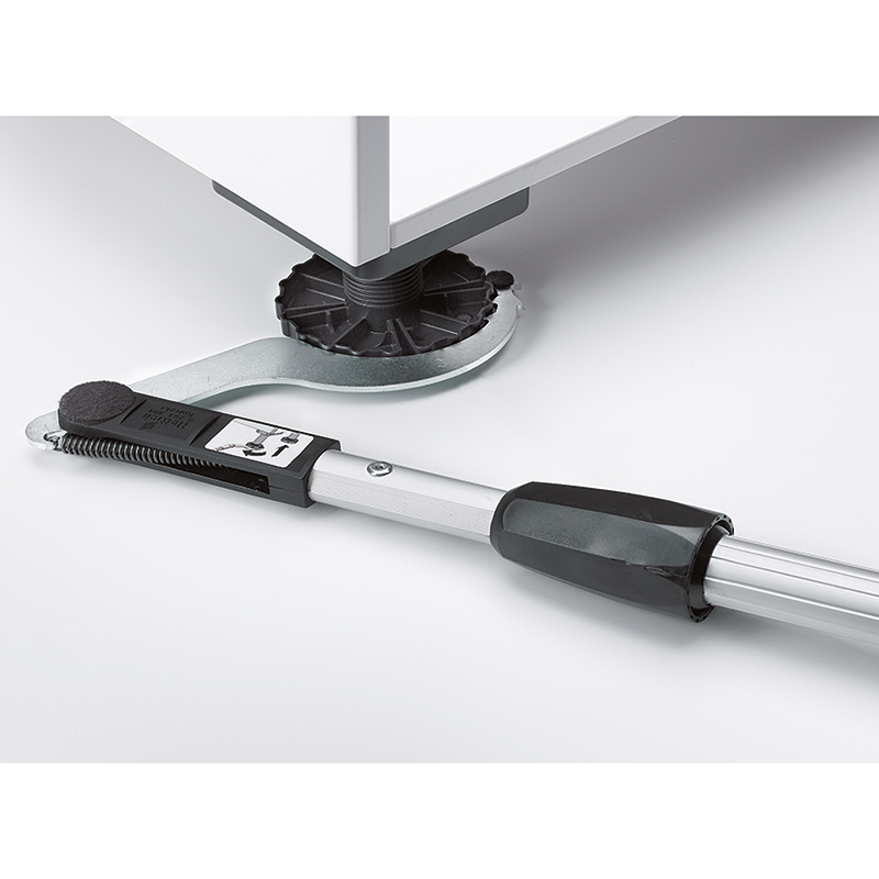 Réglage facile et rapide. Il est possible d'orienter facilement le pied du meuble et il est possible de regarder, en même temps, un niveau à bulles.
