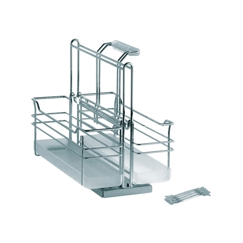 Le panier supérieur pivotant permet d'obtenir plus de surface de rangement.Fixation facile sur le fond du meuble.Amortisseur intégré. Fonds plastique résistant à l'acide, gage de sécurité pour le transport des produits d'entretien.