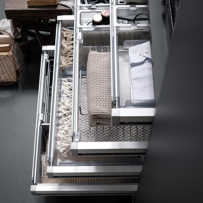 Vibo à développé la gamme ELITE pour vous permettre d’optimiser l’espace et personnaliser l’aménagement de votre dressing.La gamme de produit ELITE est composée de cadres coulissants modulables, paniers coulissants, portes pantalons, porte cintres, porte chaussures, porte cravates, miroirs ainsi que diverses options.
