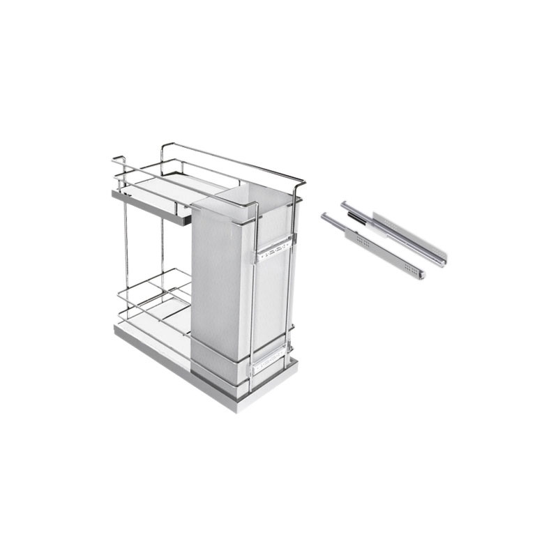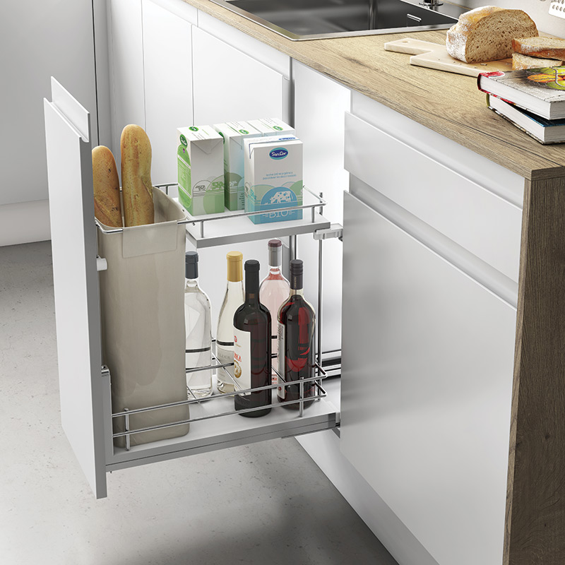 Panier coulissant 2 niveaux sur coulisses à sortie totale avec amortisseur.