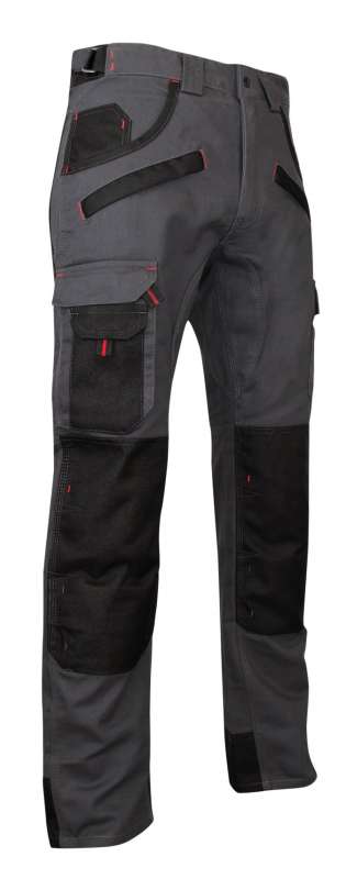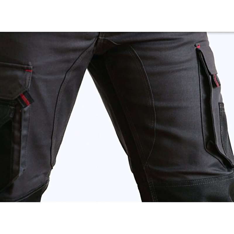 Ceinture resserrable par pattes élastiquées sur les côtés 2 poches western avec 1 poche ticket 2 poches zippées poches genouillères double position en Oxford résistant 900D côté gauche au porté : passant porte marteau, 1 poche cuisse à soufflet + poche à outils côté droit au porté : 1 poche cuisse à soufflet + 1 poche téléphone dos : 2 poches semi-flottantes fermées par bandes auto-agrippantes, dont une avec rabat 1 poche mètre et 1 poche à stylo ceinture rehaussée dos, large passant milieu dos renfort bas de jambe + divers empiècements et éléments renforcés en Oxford résistant 900D imperméable renfort entrejambe devant et dos triple piqûre 60% coton 40% polyester croisé - 300 gr/m'b2.