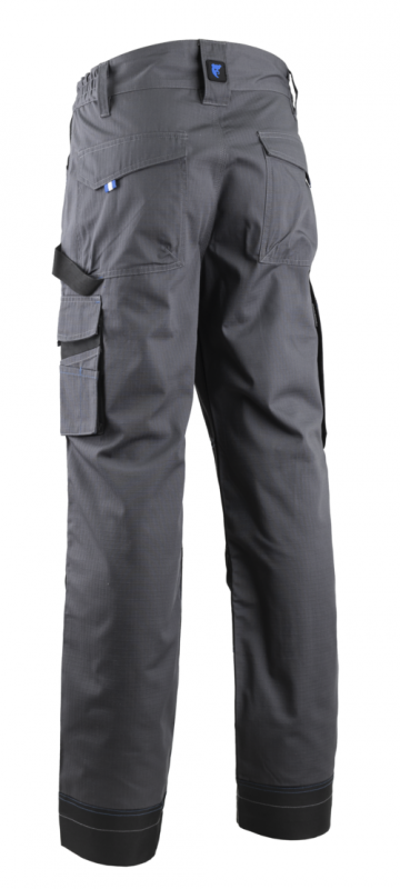 RIPSTOP: 65% Polyester / 35% Coton – 240g/m² OXFORD: 100% Polyester / PU - 600D Ceinture élastiquée côtés + Passants Réhausse dos avec marquage 2 poches italiennes à soufflet 2 poches dos à rabat + Pinces d’aisance 1 poche cargo + Multi-compartiments 2 poches outils superposées dont 1 avec un soufflet 1 sangle porte-marteau Genoux préformés Poches genoux en Oxford, ouverture par le bas Nombreux renforts en Oxford Ourlet supplémentaire de 5cm Triple piqûre Finitions en coloris contrasté Coupe « regular »