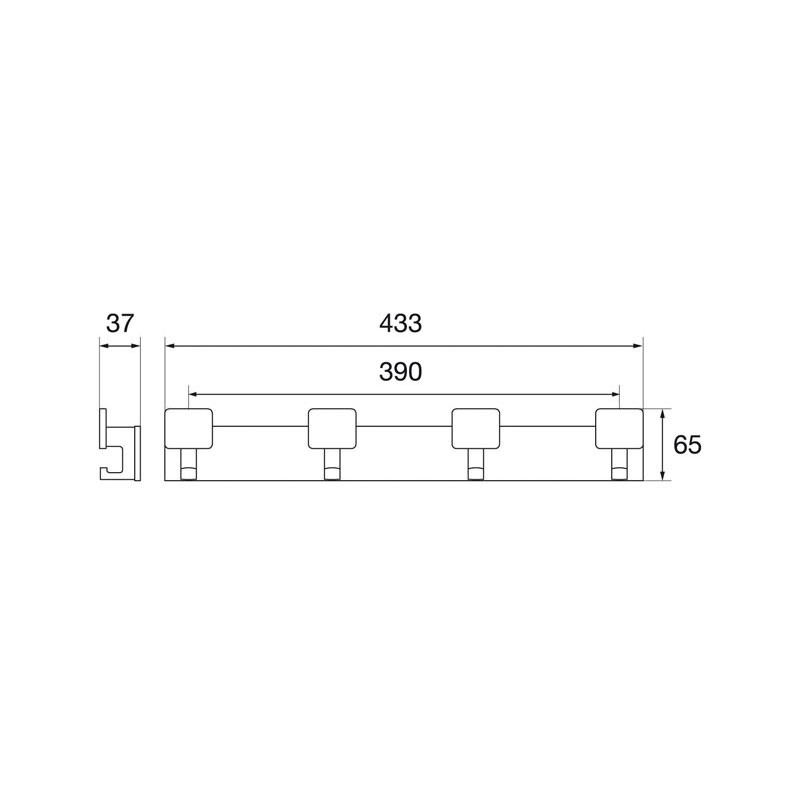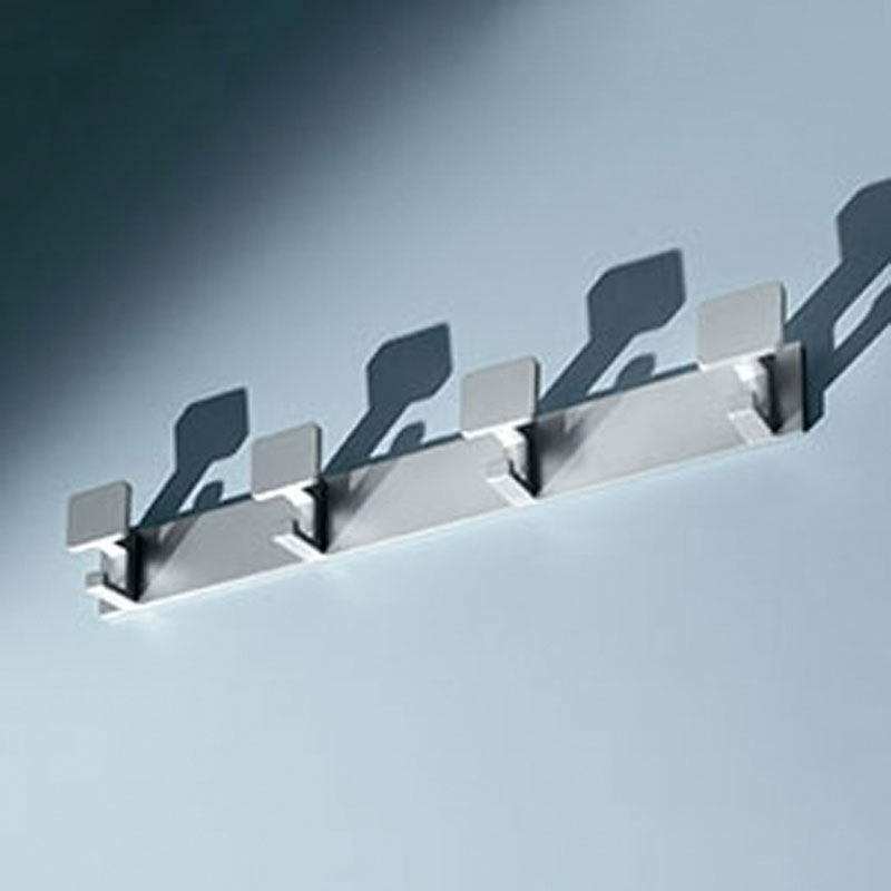 4 patères à tête carrée + 1 crochet, fixées sur lice.Avec set de fixation.