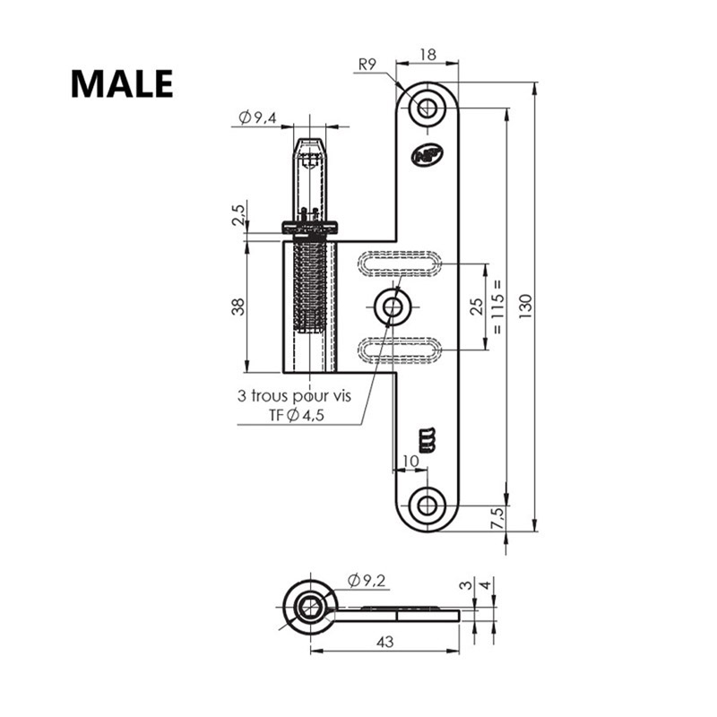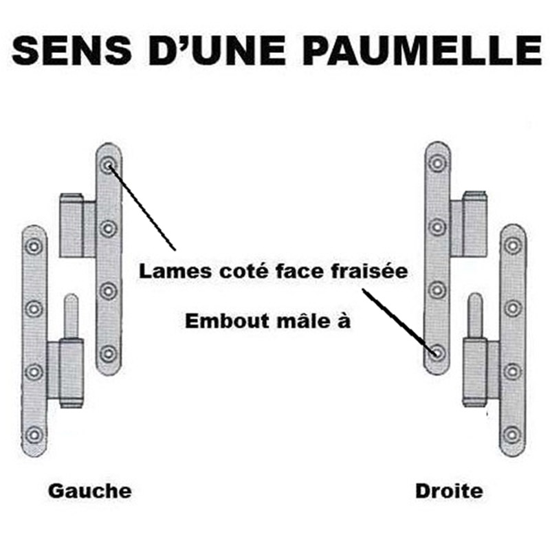Lame mâle livrée avec fourreau blanc invisible intégré (clipsé sur axe mâle et indécrochable en cas de dégondage): ne grince pas grâce au plastique et évite les salissures. Cache-paumelle intégral : non inclus.
