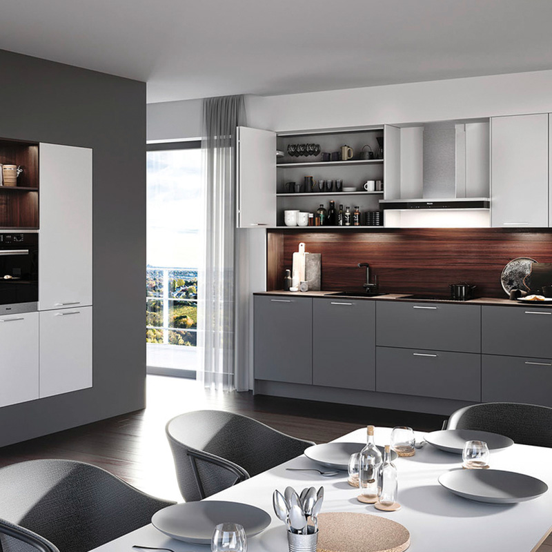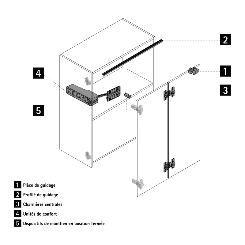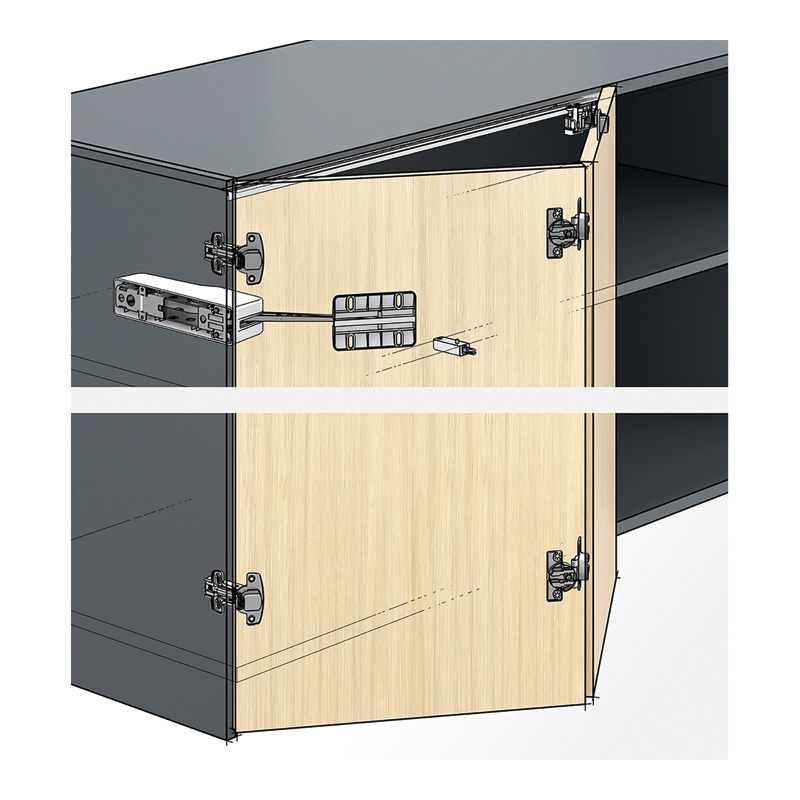 WingLine S permet de réaliser des portes coulissantes pliantes pour des meubles de faible hauteur. Une technique fiable à un rapport qualité-prix imbattable, le système de portes pliantes WingLine S ne nécessite aucun guidage par le bas. La solution optimale, tout spécialement pour les petites façades.S'utilise avec les mécanisme d'ouverture Push to move et Pull to move ou Pull to move Silent.