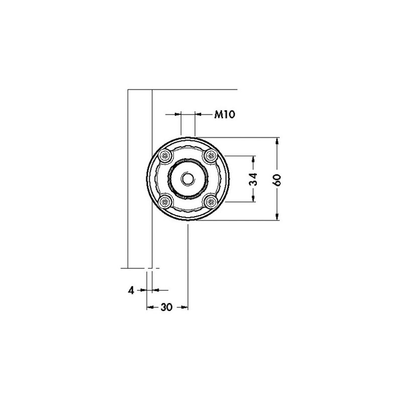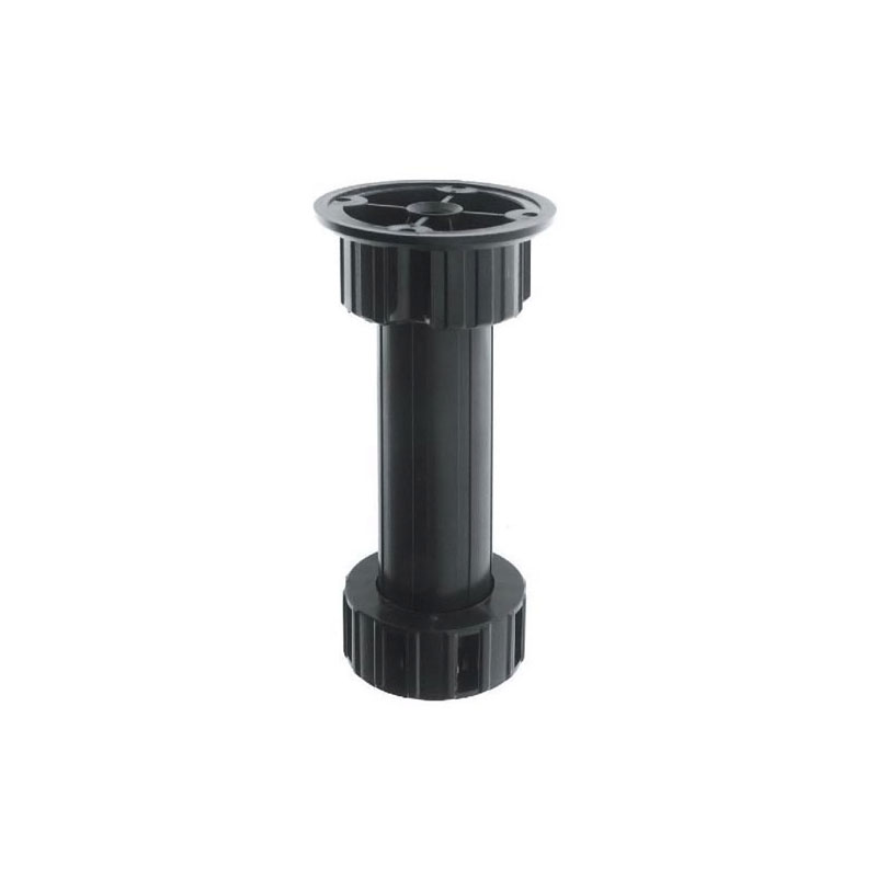 Pied ABS noir Ø 28mm avec vérin et embase de fixation non démontable à 4 trous de vis. Livré avec vis creuse et cache blanc. Filetage M10.