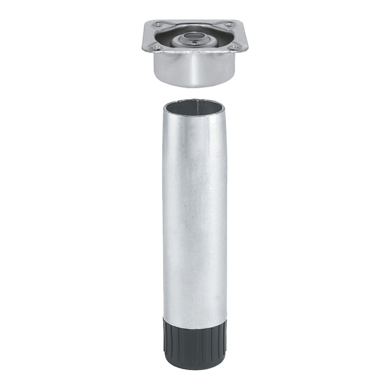 Pied acier Ø 28mm avec vérin ABS et embase démontable.