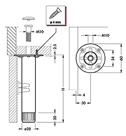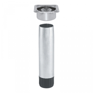 Pied acier Ø 28mm avec vérin ABS et embase non démontable.