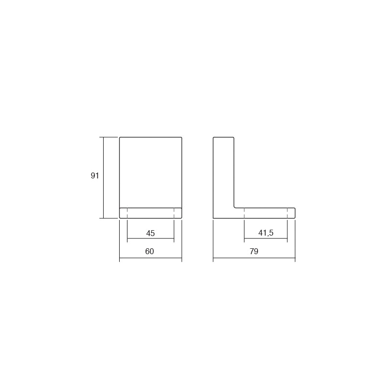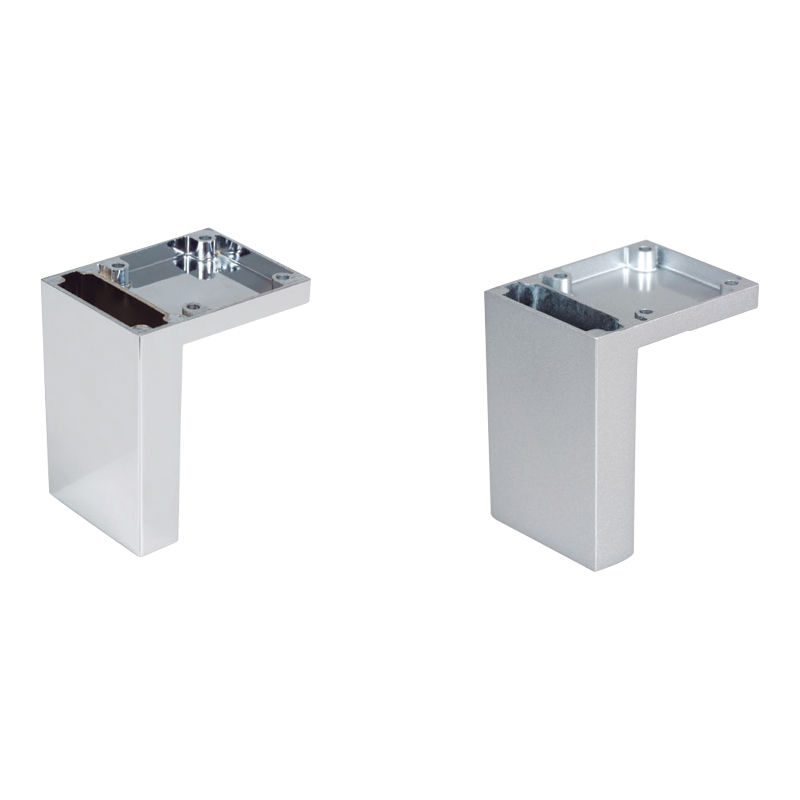 Pied de meuble lisse de forme L.Platine largeur 60mm longueur 79mm.