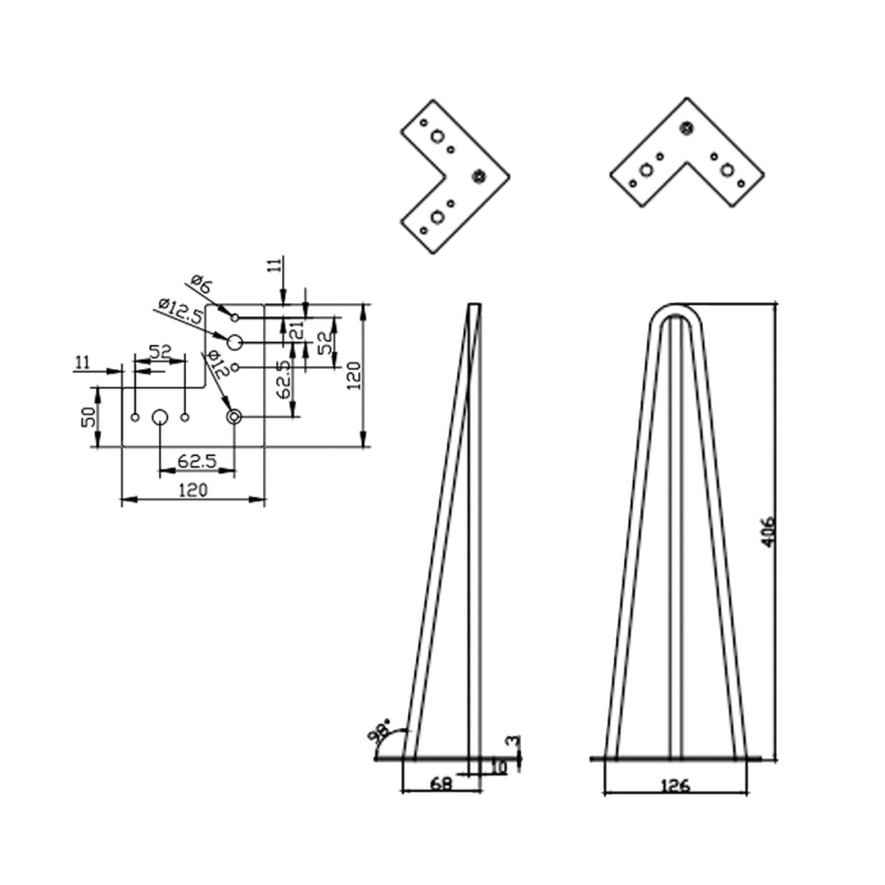 Pied pour meuble ou table de forme épingle.Capacité de charge pour 4 pieds, environ 100Kgs.