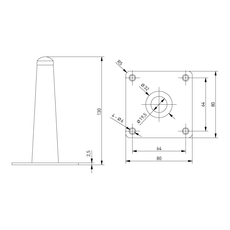 Pied de meuble, patin plastique.