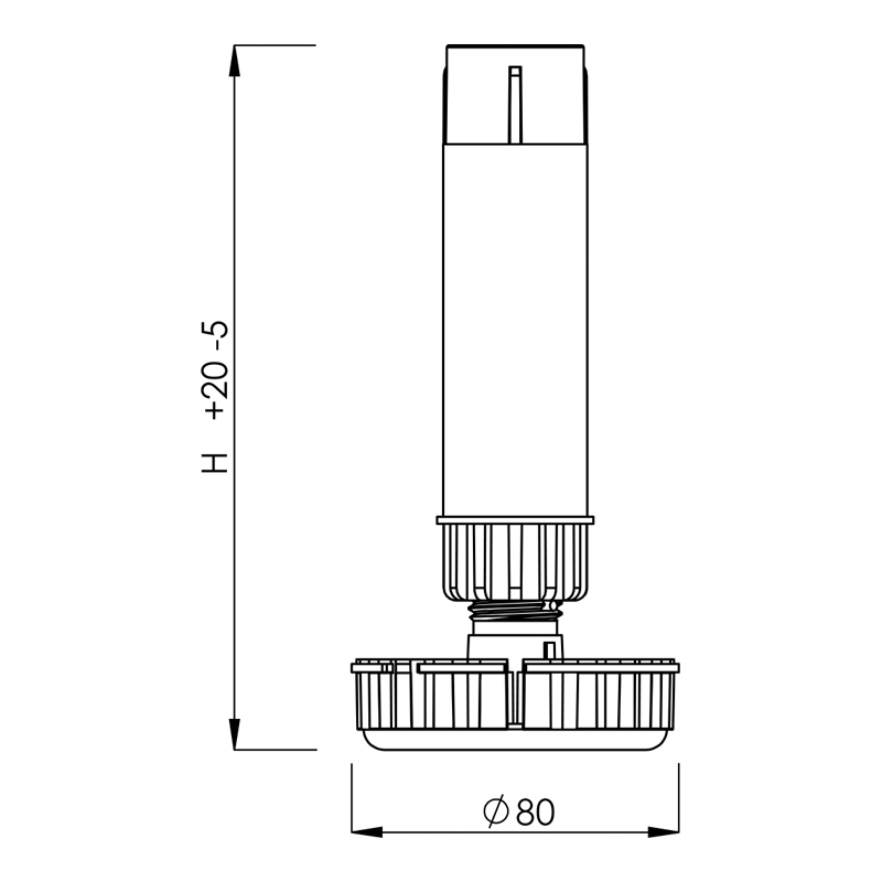 Pied réglable D.35 mm sans embase, avec vérin diamètre 80 mm.