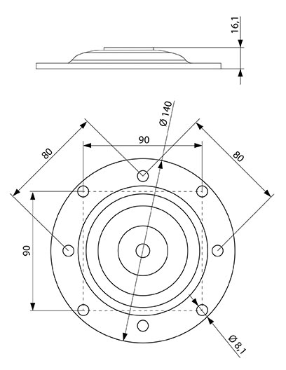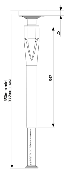 Diamètre : 55/80 mm (55 en partie basse et 80 en partie haute).Livré avec platine et vis de fixation.