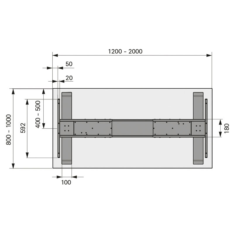Le piétement LegaDrive a été testé par l’organisme de contrôle technique allemand, le TÜV Süd, et a obtenu le sigle GS (sécurité contrôlée).En utilisant le système LegaDrive, vos clients bénéficient d’un niveau élevé de sécurité et peuvent ainsi nettement minimiser leurs efforts.Piétement en acier recouvert peinture époxy.Motorisation à commande par touches montée/descente.Hauteur réglable en continu de 620 à 1295 mm, avec démarrage progressif.Largeur ajustable de 50 en 50 mm.Vitesse de la course 40mm/seconde.Tension nominale 230V/50Hz. Dimensions de plateau recommandées :- Largeur : 1200 à 2000 mm- Profondeur : 800 à 1000 mmProtection anti pincement si un obstacle se présente à la montée ou à la descente.Charge maxi 120kg (plateau de table et support de plateau compris).Equipé de vérins pour mise à niveau.Motorisation intégrée dans le piétement. Consommation au repos <0,3 watt.Ensemble comprenant :2 pieds motorisés avec montant carré section 90x90 mm.1 kit de support de plateau réglable en largeur.1 alimentation avec câble secteur longueur 3000 mm.1 boitier de commande cablé.1 notice et visserie de montage.