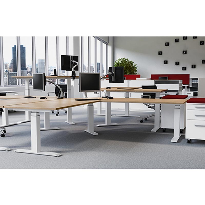 Les piètements à hauteur réglable répondent à la demande de plus en plus forte du marché dans le cadre de la lutte contre les TMS et l'amélioration de l'ergonomie. Travailler environ 20% du temps debout détendra muscles et articulations réduisant ainsi le risque de TMS et augmentant le bien-être de l'utilisateur.