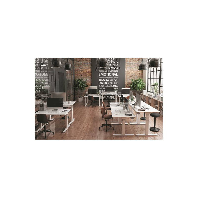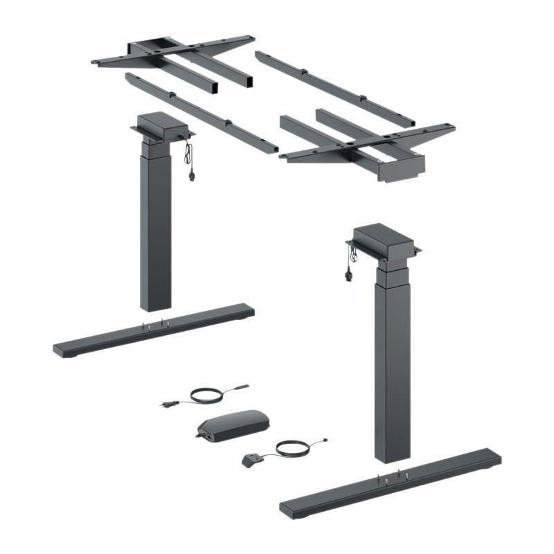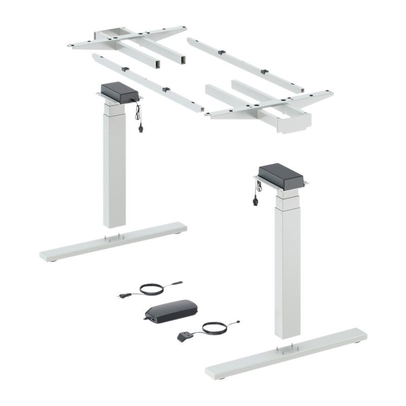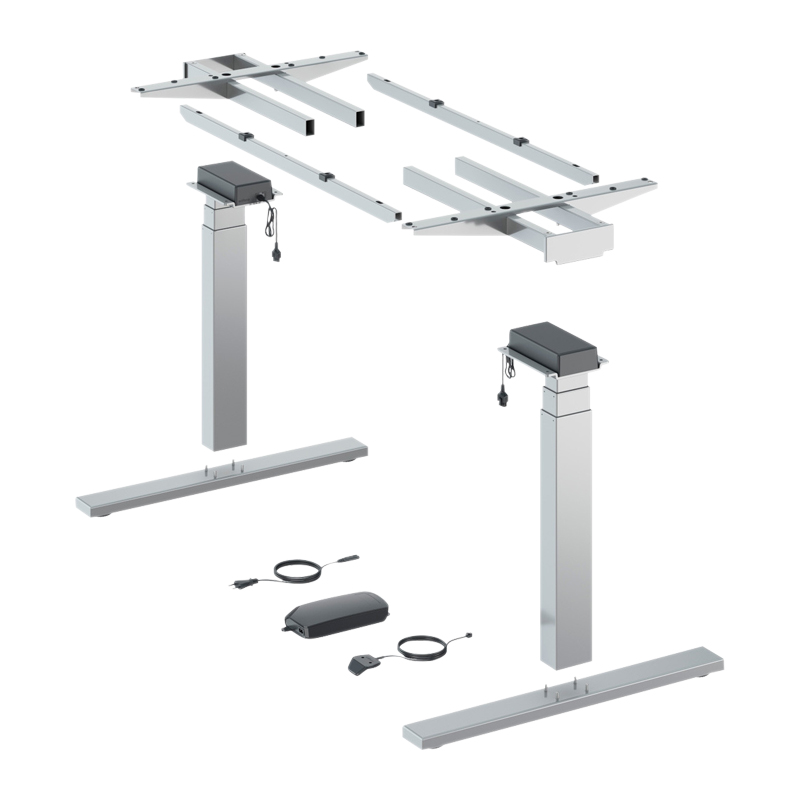 Piètement de table réglable en hauteur par moteur électrique.Colonnes de levage double développement télescopiques de 60 x 90 mm.Pour des plateaux de table ou de bureau variables : - profondeur 750 à 900 mm - largeur 1200 à 2000 mmRéglage en hauteur de 625 à 1285 mm.Course de levage de 660 mm.Capacité de levage maxi 120 kg avec une charge uniforme de la table (Capacité de levage = charge utile + plateau de table).Réglage en hauteur avec démarrage en douceur.Tension nominale 100 - 240 V / 50 - 60 Hz.Faible consommation d’énergie (mode veille 0,3 W).Vitesse de réglage 39 mm/s.Détection de collisions (pas de protection des personnes).Kit composé de :