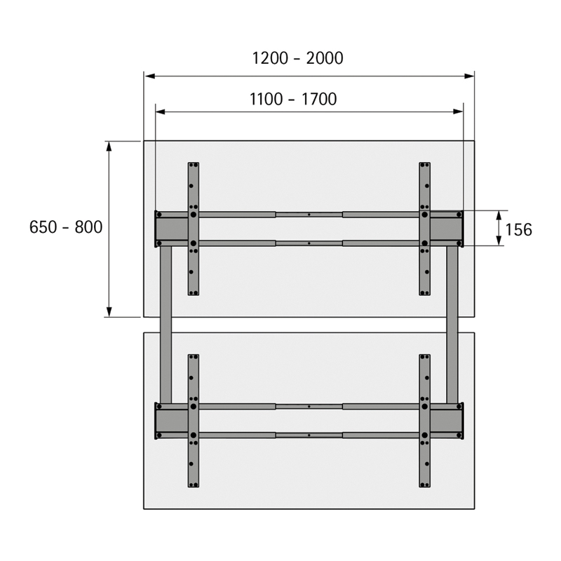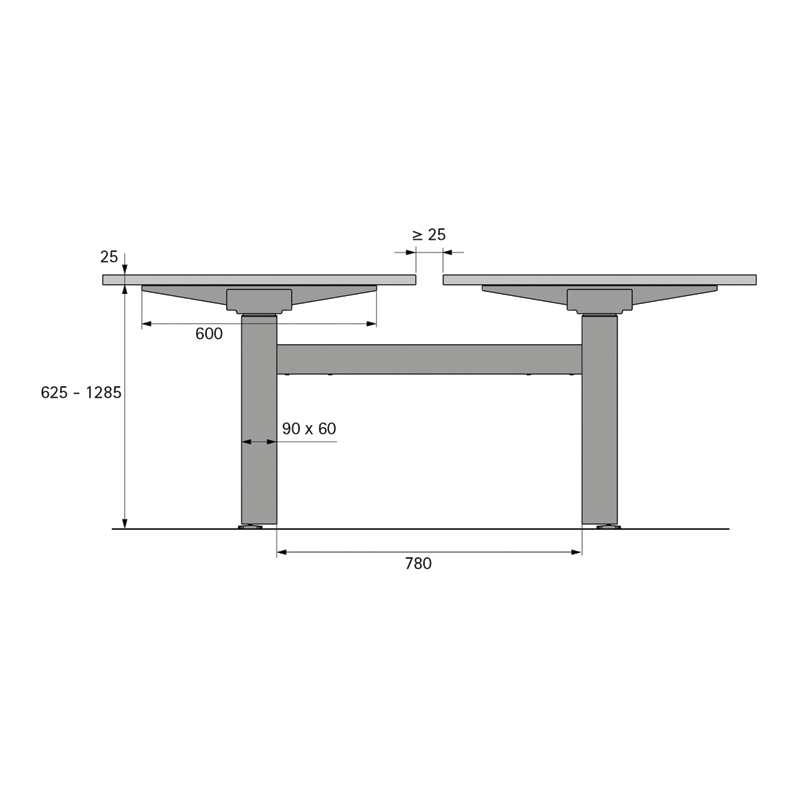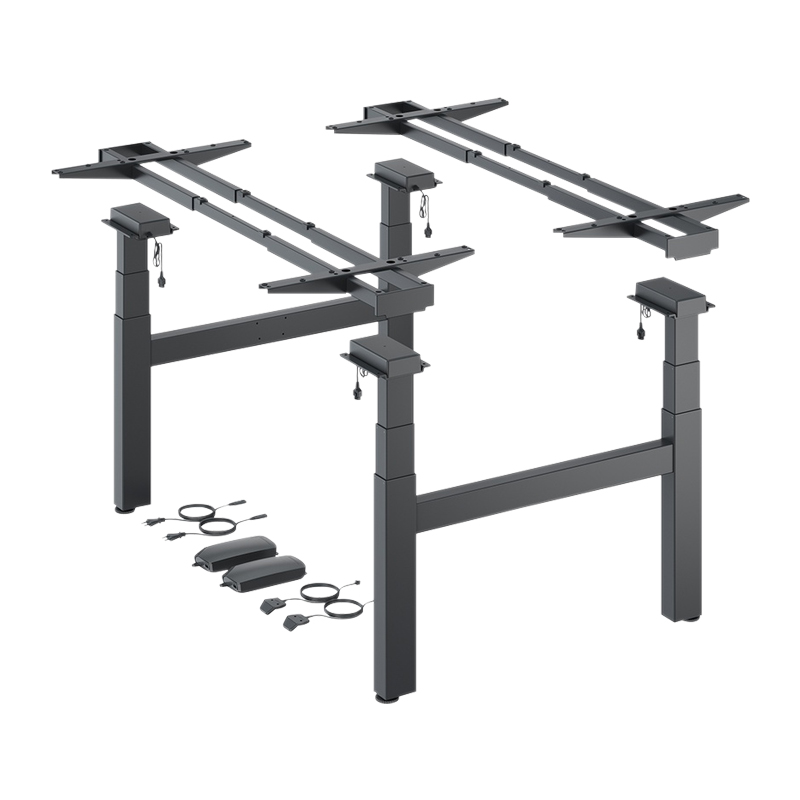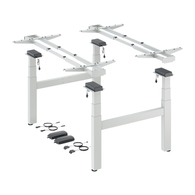 Piètement de bureau réglable en hauteur par moteur électrique pour 2 postes de travail en version (bench) face à face.Colonnes de levage double développement télescopiques de 60 x 90 mm.Pour des plateaux de table ou de bureau variables : - profondeur 650 à 800 mm - largeur 1200 à 2000 mmRéglage en hauteur de 625 à 1285 mm.Course de levage de 660 mm.Capacité de levage maxi 120 kg avec une charge uniforme de la table (Capacité de levage = charge utile + plateau de table) par poste de travail.Réglage en hauteur avec démarrage en douceur.Tension nominale 100 - 240 V / 50 - 60 Hz.Faible consommation d’énergie (mode veille 0,3 W) par poste de travail.Vitesse de réglage 39 mm/s.Détection de collisions (pas de protection des personnes).Kit composé de :