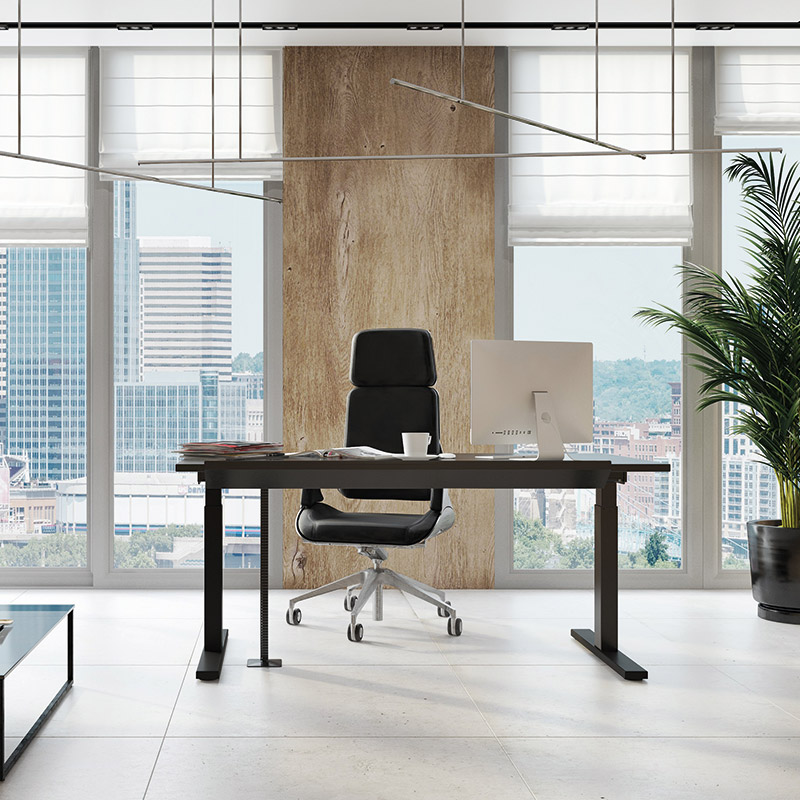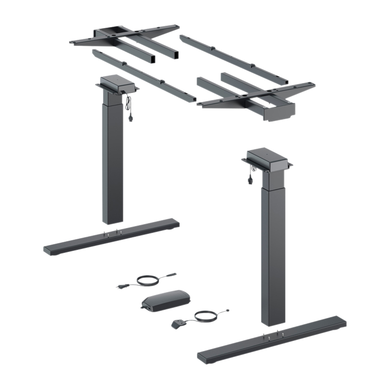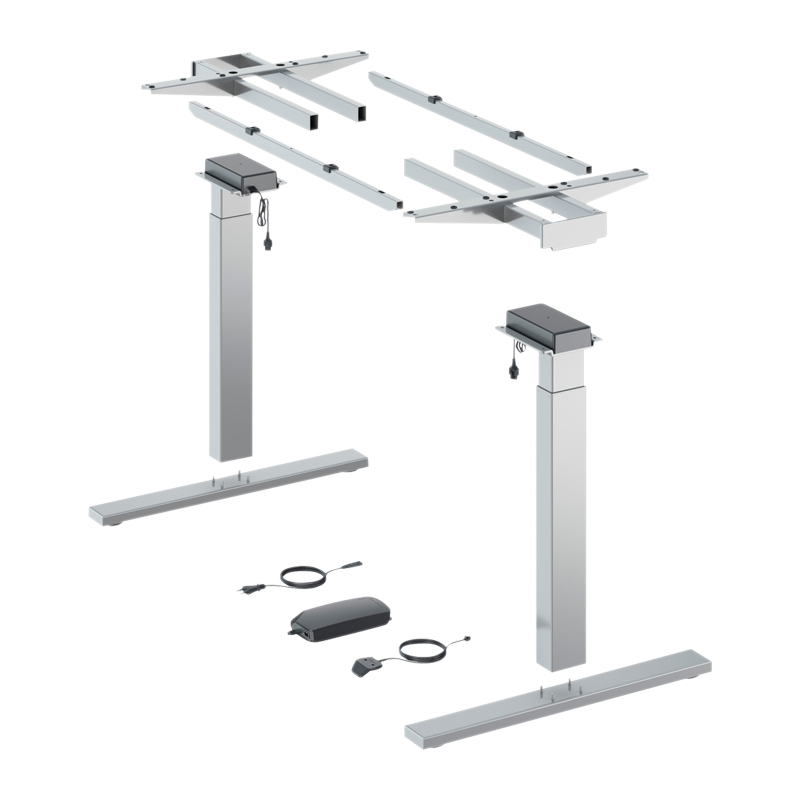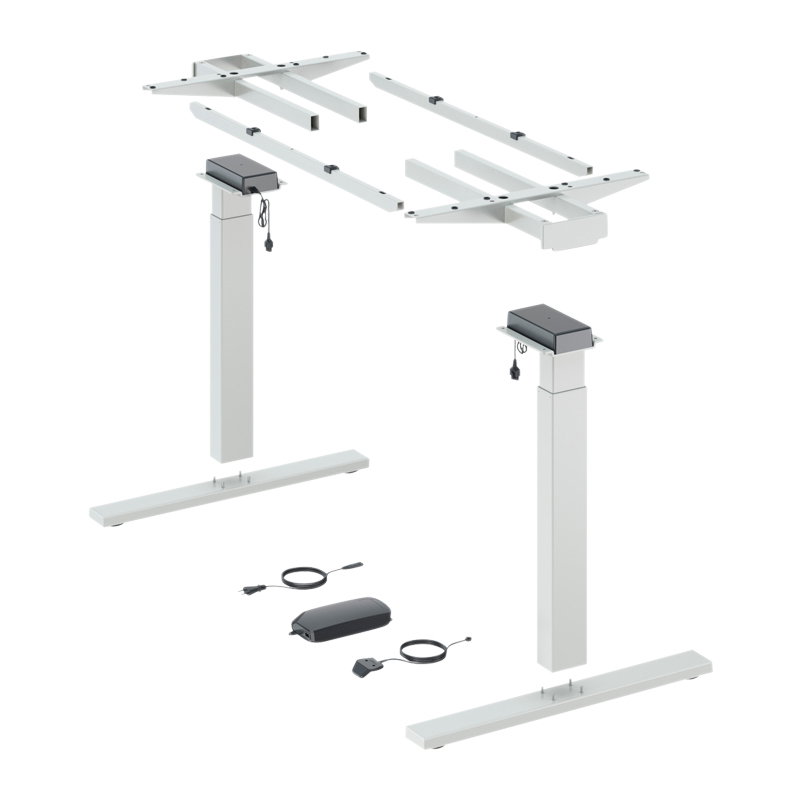 Piètement de table réglable en hauteur par moteur électrique.Colonnes de levage simple développement télescopiques de 60 x 90 mm.Pour des plateaux de table ou de bureau variables : - profondeur 750 à 900 mm - largeur 1200 à 2000 mmRéglage en hauteur de 700 à 1190 mm.Course de levage de 490 mm.Capacité de levage maxi 120 kg avec une charge uniforme de la table (Capacité de levage = charge utile + plateau de table).Réglage en hauteur avec démarrage en douceur.Tension nominale 100 - 240 V / 50 - 60 Hz.Faible consommation d’énergie (mode veille 0,3 W).Vitesse de réglage 39 mm/s.Détection de collisions (pas de protection des personnes).Kit composé de :