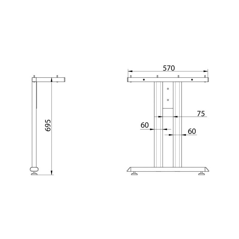 Pied permettant de faire un bureau avec un retour (ex: bureau avec un angle de 90°).